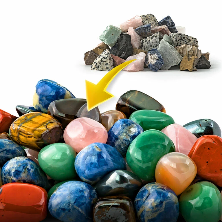 You also get 1 pound of rough rocks to tumble, 5 jewelry settings, tumbling grit, and a detailed learning guide with instructions.