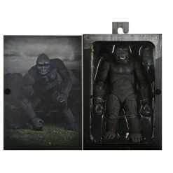 NECA proudly presents the Ultimate King Kong! He stands 8″ tall with super detailed hair and battle wounds across the body and head sculpts, received from defending his island. This massive figure has over 30 points of articulation. The figure includes two brand-new interchangeable heads (one with jaw articulation), 3 pairs of interchangeable hands, a pit monster, pteranodon, and tree trunk accessory. Display-friendly window box packaging with opening front flap.