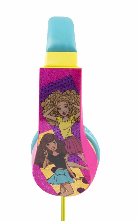 Listening to music is an adventure! And what better way to explore it than to sling these Barbie Kids Safe Headphones over your ears. Detailed graphics of your favorite Barbie characters are featured on each ear piece to join you on your musical journey, while soft cushioned ear pads and an adjustable headband ensure a great listening experience. A built-in volume limiter delivers your music in studio quality and safe sound levels, pleasing both kids and parents alike.