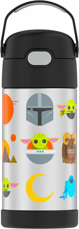 The THERMOS FUNTAINER 12oz Vacuum Insulated Stainless Steel Water Bottle with Straw keeps drinks cold for up to 12 hours. The double wall stainless steel construction is built to handle drops, dings and assorted roughhousing. Includes an integrated carry handle with soft-touch grip, making it easy for kids to carry with them throughout the day. Help keep germs away with the hygienically covered silicone straw which is removable for easy cleaning. To clean, you can pop your FUNTAINER water bottle in the dishwasher; however hand washing is recommended. Not for use with hot liquids.