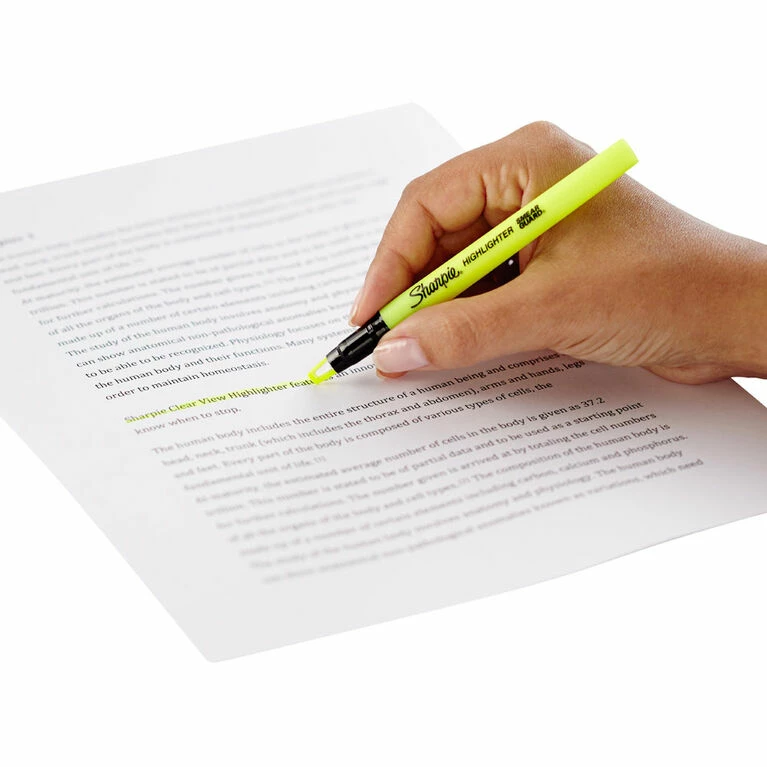 Highlight important words and passages in your books or notes with this highlighter from Sharpie. Its Smear Guard ink resists smudging so your highlights stay clear and visible. Just allow the ink to dry before you highlight your favorite sentences.