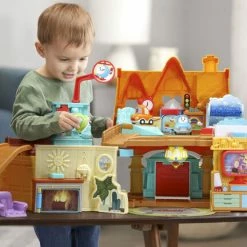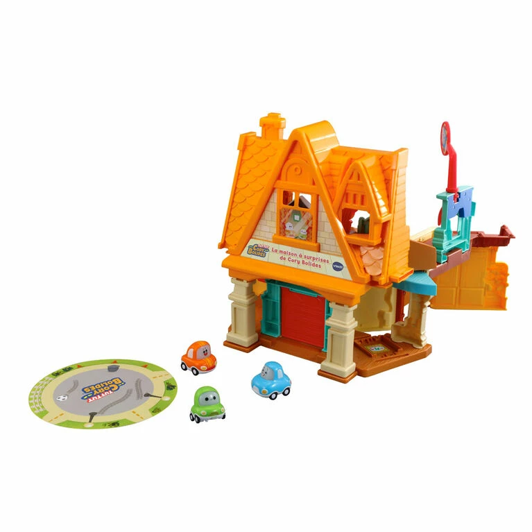 Welcome to the Tut Tut Cory Bolides Cory’s Stay & Play Home, just like in the original series, Tut Tut Cory Bolides. Explore every room with Cory, Mama and Chrissy Bolides mini characters in this 360° playset. This house is built just for cars with a pretend bathtub car wash complete with scrub brush, ramps and more. Hang out in Cory’s room and place mini characters on the Zone Surprise location to hear unique phrases, sing-along songs and sounds. Slide down the ramp to watch T.V. in the living room or try to get Chrissy to take a bath just like in the show. Press the button near the fireplace to find a hidden door or press the T.V. button to watch DJ Déraille. The home also features lights, sound, music and phrases from your favorite characters. Place any Zone Magique character (sold separately) on the Zone Magique location to hear them talk, play music and light up. C’mon, let’s go! Intended for ages 2+ years. Requires 3 AAA batteries.