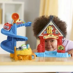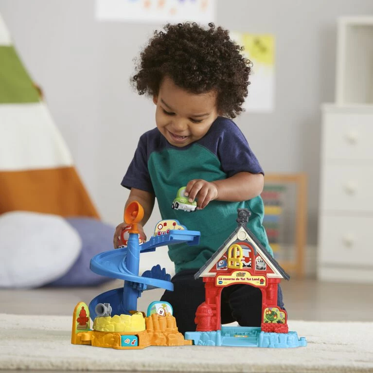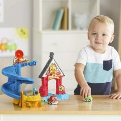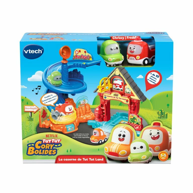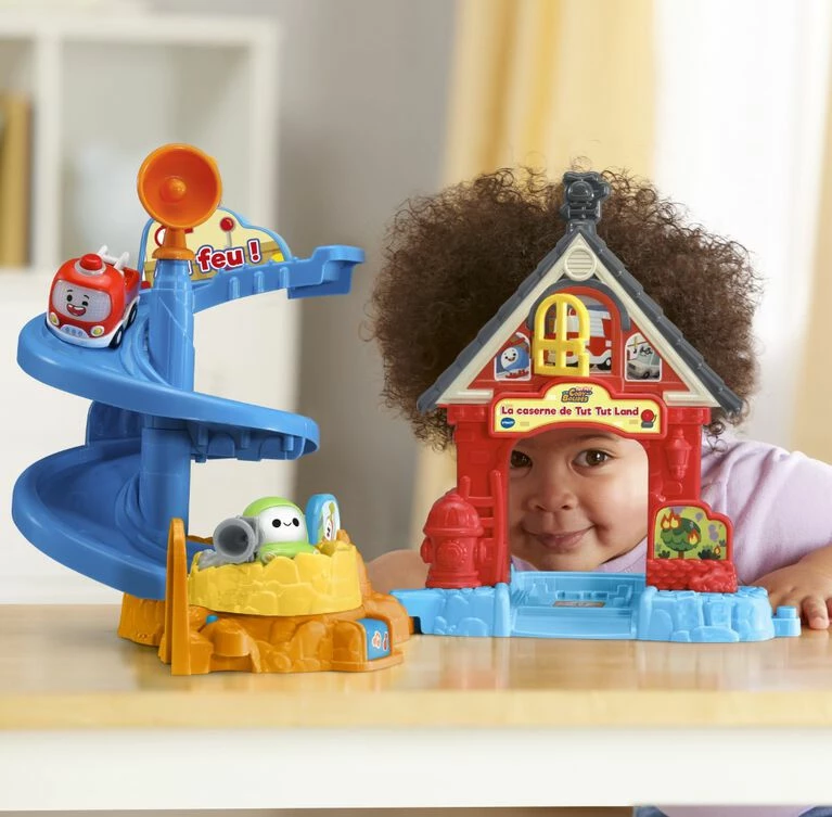 Go on a rescue mission with Freddie Pin-pon and Chrissy Bolides at the Tut Tut Cory Bolides Freddie’s Firehouseâ„¢ just like in the original series, Tut Tut Cory Bolides! Freddie’s mom Carolyn Pin-pon encourages exploration of all the exciting activities the firehouse has to offer with mini characters Freddie and Chrissy. Help Freddie and Chrissy rescue Phil just like in the show. Slide down the spiral ramp to safety while building motor skills, then activate the Zone Surprise location at the bottom to hear each character say unique phrases. Place any Zone Magique character (sold separately) on the Zone Magique location at the firehouse door to hear them talk, play music and see them light up. Help save the day! Intended for ages 2+ years. Requires 2 AAA batteries.
