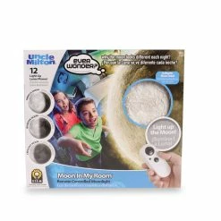 Ever wonder why the moon looks different each night? Find out as you match your moon to the one in the night sky as you learn about the moon’s lunar phases. Authentically detailed, Moon In My Room that hangs on your wall and shines moonlight just like the real moon! Features different light-up lunar phases with the touch of a button. Includes remote control. Download an exciting audio tour of the moon at UncleMilton.com!
