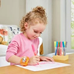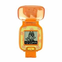 Let’s play with Bluey, Bingo and the Wackadoo Watch! This wristwatch for kids featuring Bingo includes eight digital clock faces, time tools and four games. Hear the voices of Bluey and Bingo guide you through games that include characters from the show. Bandit has wound Bingo up like a wind-up toy! Press the left and right buttons to help Bingo avoid obstacles that appear in the classroom. Bluey wants to play a game of keepy-uppy! Help Bluey keep a balloon off the ground by using the left and right buttons. At Hammerbarn, Bluey wants to buy the same thing as Bingo. Match an object with its shadow to find a matching item. See Bingo hide her plush bunny Floppy into one of three chickenrat eggs and mix them up. Watch carefully and choose the egg where Floppy is hidden. Time tools include a stopwatch, timer and alarm. Wackadoo! Intended for ages 3-6 years. Requires 1 CR2450 lithium coin battery. Battery included for demo purposes only. New battery recommended for regular use.