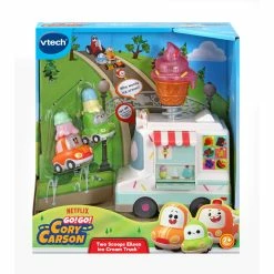 Can you hear the ice cream truck? Pick your favorite ice cream treat with Two Scoops Eileen Ice Cream Truck just like in the original series Go! Go! Cory Carson! Hear Eileen talk by pressing her light-up windshield button, and watch her cone light up as she plays sound effects and songs from the show. With so many kinds of ice cream, how will Cory and Chrissy choose? Drive the included special-edition mini Cory and mini Chrissy PlayZone characters up to the window and press Eileen’s serving counter for more role-play interactions. Eileen’s face lights up with the sounds. Roll Eileen around to see her cone light up and play music. Who wants ice cream? (Ice cream truck not for use on Go! Go! Cory Carson playsets). Intended for ages 2+ years. Requires 3 AAA batteries. Batteries included for demo purposes only. New batteries recommended for regular use.