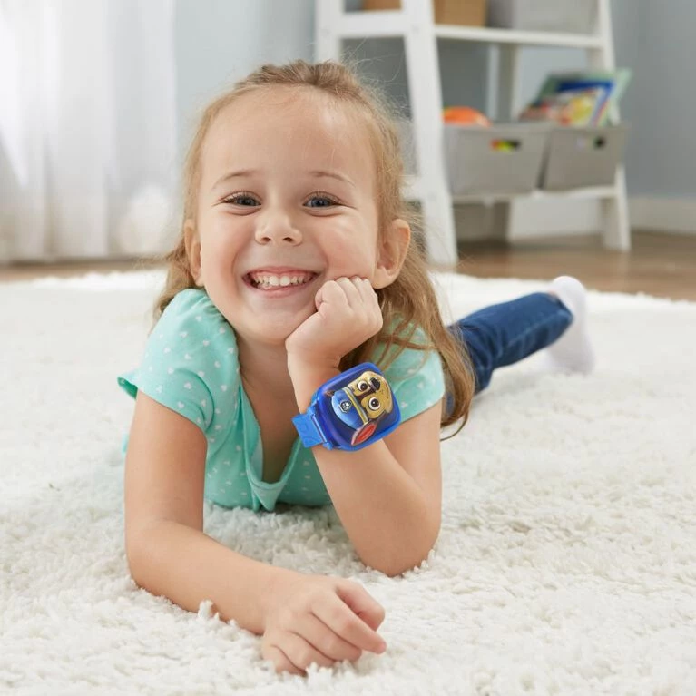 Get on the case with the PAW Patrol Learning Pup Watch! This wearable gadget featuring a 3D Chase on the cover features 12 digital clock faces, time tools and four games. Hear Ryder call the pups into action and guide you through games to solve puzzles and complete missions. Match badges and gadgets to the correct pups or save Farmer Yumi’s animals by identifying animal tracks to build matching skills. Complete missions by solving math problems to help Ryder find his Pup Pad or help Marcus use an X-ray machine and EMT kit to take care of Jake. Clock faces feature favorite PAW Patrol pups, and time tools include a stopwatch, timer and an alarm with a choice of alarm tones. No job is too big, no pup is too small! Intended for ages 3-6 years. Requires 1 CR2450 lithium coin battery. Battery included for demo purposes only. New battery recommended for regular use.