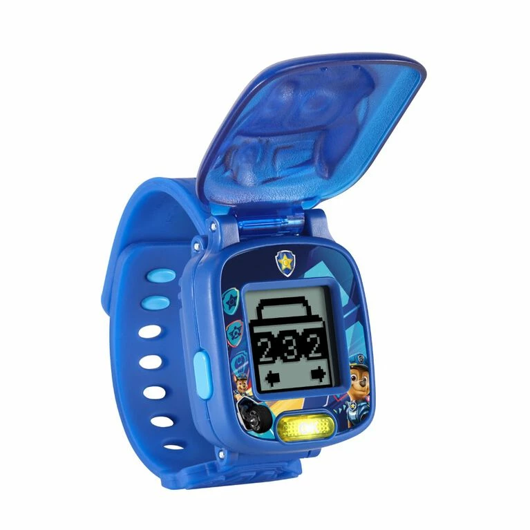 Time flies when your child is on a roll with the PAW Patrol: The Movie: Learning Watch featuring Chase on the cover! The voice of Ryder guides children through play. Games and activities help children learn basic math skills, number sequences, matching, memory and hand/eye coordination. Pick from ten PAW Patrol digital clock face designs and three alarm tones, then use the stopwatch to time events with friends. It’s game time! Explore four learning games with the PAW Patrol pups. Find the biggest or smallest number to help Marshall find his way to the city in the Adventure City Awaits game. Next, use Rubble’s wrecking ball to hit the target and rescue Chase. Go on a Train Mission to solve the mystery code to save the passengers on the train! Or join Skye in the Take to the Skies game, avoiding obstacles to stop the Cloud Catcher. Adventure, fun and learning are all packed into a kid-sized Chase wristwatch you can take on the go! Intended for ages 3-6 years. Requires 1 CR2450 lithium coin battery. Battery included for demo purposes only. New battery recommended for regular use.