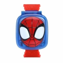 Go on adventures with Peter Parker, Miles Morales and Gwen Stacy with the Spidey and His Amazing Friends Spidey Learning Watch! This electronic wristwatch for kids featuring a 3D Spidey on the cover includes nine digital clock faces, time tools and four games. Hear Spidey say fun phrases and listen as the narrator guides you through games that focus on hand-eye coordination, counting, matching and more to complete crime-fighting adventures. Dodge Doc Ock’s lasers to help Spidey get the stolen Energy Star back, count bubbles to blast Green Goblin’s glider, match patterns to find the missing scooter and choose the correct letter to catch Rhino. Digital clock faces feature Spidey and His Amazing Friends, and time tools include a stopwatch, timer, alarm and cuckoo clock. Go webs go! Intended for ages 3-6 years. Requires 1 CR2450 lithium coin battery. Battery included for demo purposes only. New battery recommended for regular use.